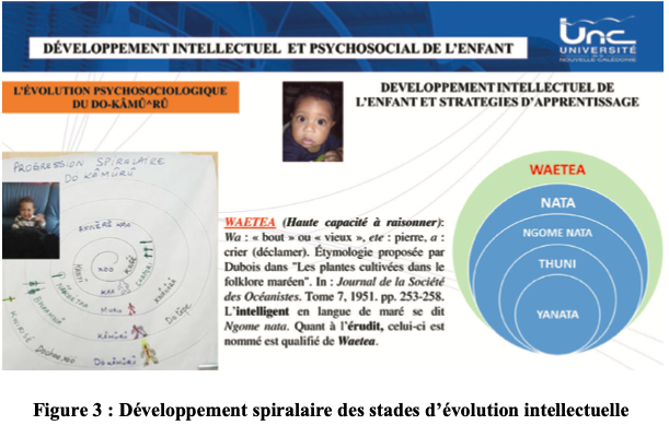 Le document suivant décrit en mode spiralaire les différents stades d’évolution de l’intelligence. Ngome nata correspond à l’intelligence développée durant les pratiques scolaires. Lorsque le stade de Ngome nata implique et s’accompagne de compétences sociales, culturelles et spirituelles, l’individu atteint le niveau et est désigné Nata. Leenhardt désignera ses pasteurs par ce terme Nata. Ce lexique vient de la langue de Nengone. Watea est le stade ultime du développement intellectuel, un niveau où l’intelligence et la sagesse au sens du discernement imprègnent l’individu (Wadrawane, 2020 en cours de publication).