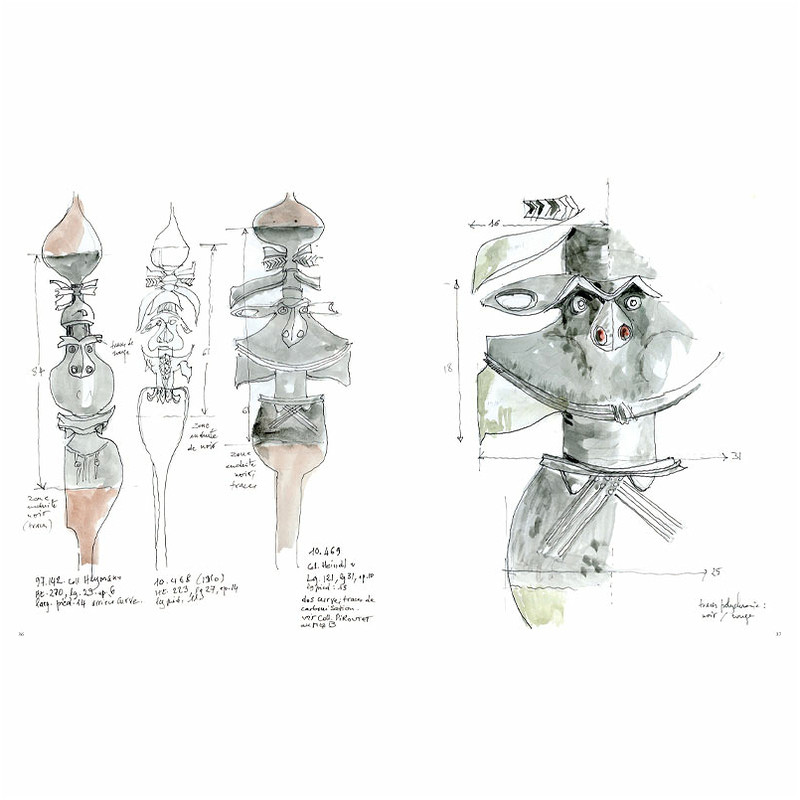Au fil du temps, ces carnets de notes se transforment en véritables recueils de dessins informatifs, complémentaires des photographies, et deviennent des outils visuels essentiels de l’inventaire.