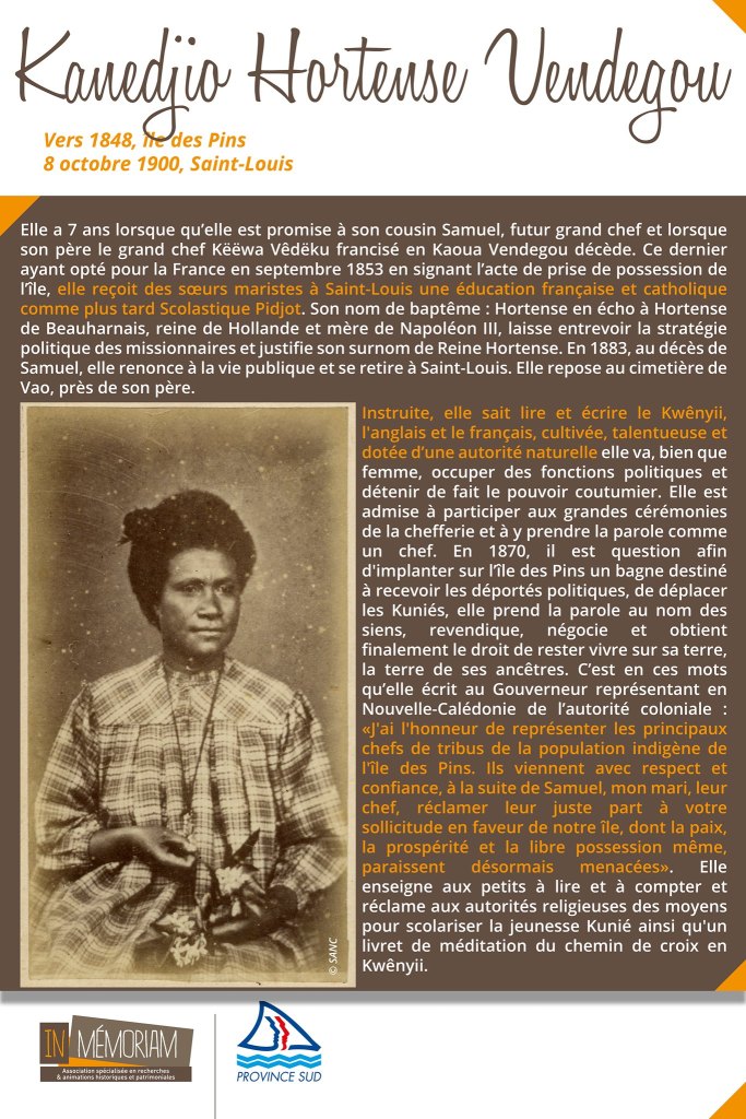 Une lettre inédite d’Hortense Vendegou, reine de l’île des Pins, et l’œuvre linguistique du P. Goujon https://www.persee.fr/doc/jso_0300-953x_1969_num_25_25_2273