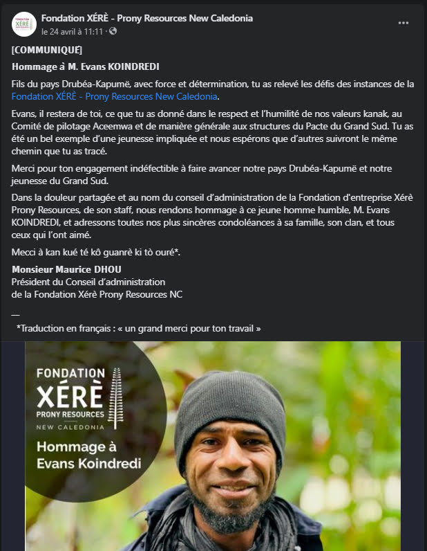Hommage de Guillaume Vama, membre du conseil d’administration de l’Association Présence Kanak et président de l’association AGIR NC.