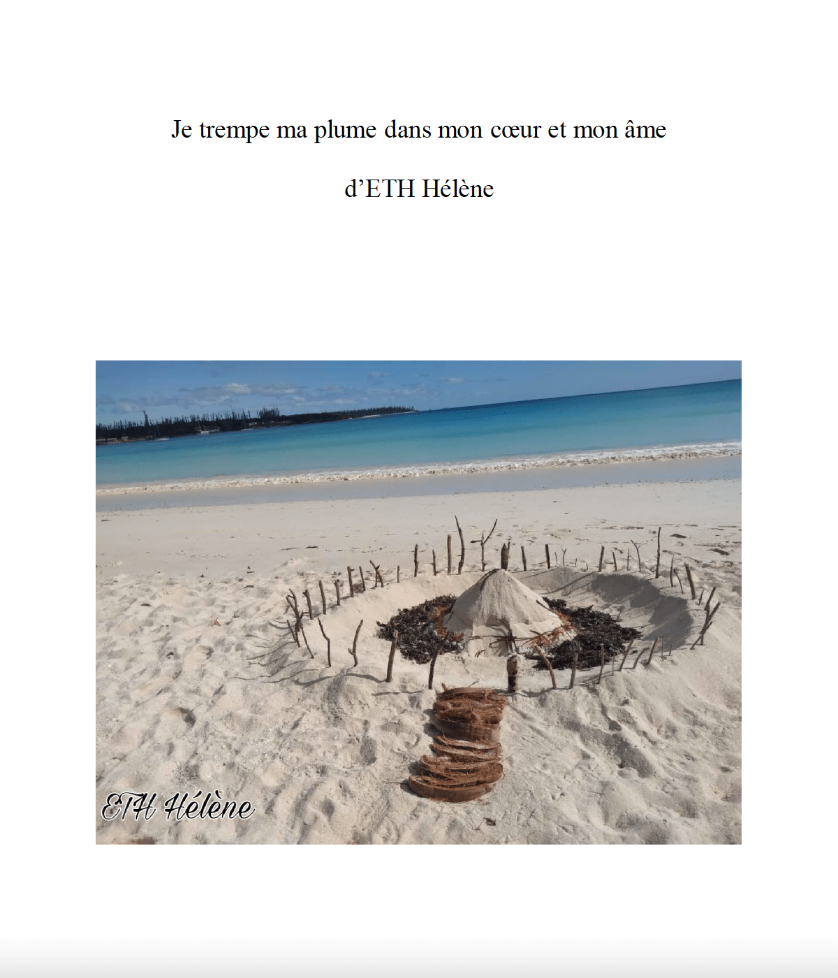Les poèmes d’ETH Hélène ont d’abord été publiés sur la plateforme numérique de l’Association Présence Kanak. « Je trempe ma plume dans mon âme et mon cœur » est son premier recueil de poèmes. Préfacé par Patrick Kici Eatene, elle nous livre ici ses méditations poétiques inspirées principalement par ses 2 environnements coutumiers : l’île de Pentecôte au Vanuatu et Kwênyii (l’île des Pins) en Nouvelle-Calédonie, de son vécu, de ses expériences et de ses rencontres. Ces textes souvent transcendants amènent le lecteur à une réflexion sur notre société actuelle et à une rétrospection sur sa vie.