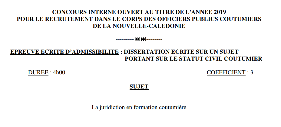 La direction des Ressources humaines et de la fonction publique de la Nouvelle-Calédonie (DRHFPNC) met à disposition sur son site des annales avec les sujets et corrigés des concours des années précédentes. Certaines épreuves nécessitent de connaitre le monde kanak.