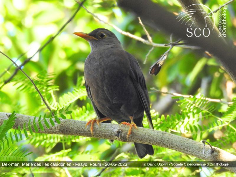 Le Dek-men ou Merle des îles calédonien (Turdus poliocephalus xanthopus)