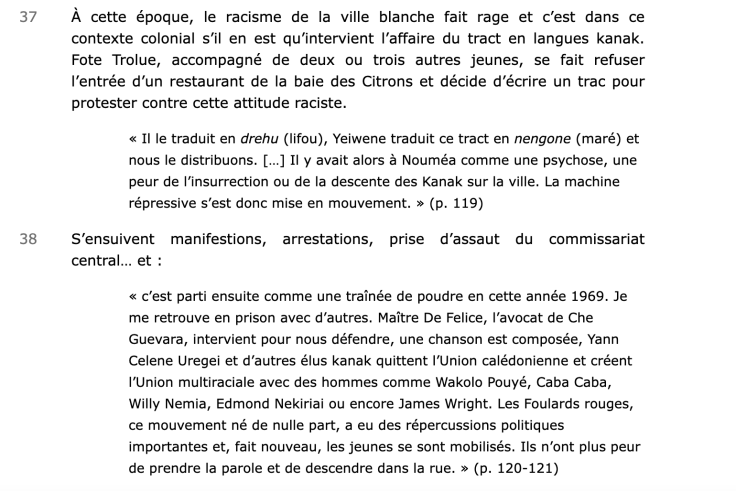 À l’époque Fote Trolue comme Nidoish Naisseline reviennent au Pays suite à leurs études suivies en France où ils ont vécu mai 1968. En France, ils se sentent égaux aux Français. De retour en Kanaky-Nouvelle-Calédonie, on pointe leur différence.