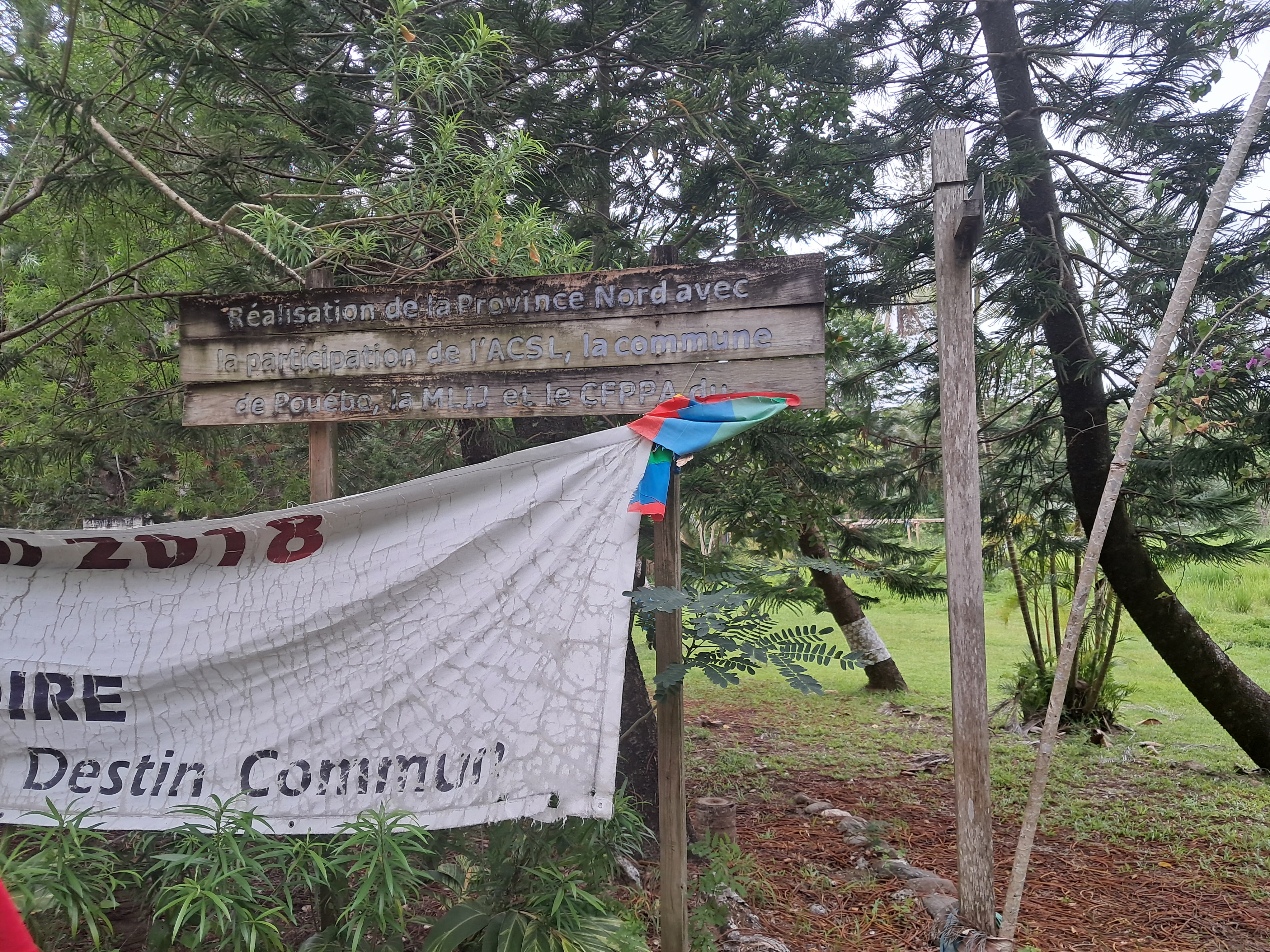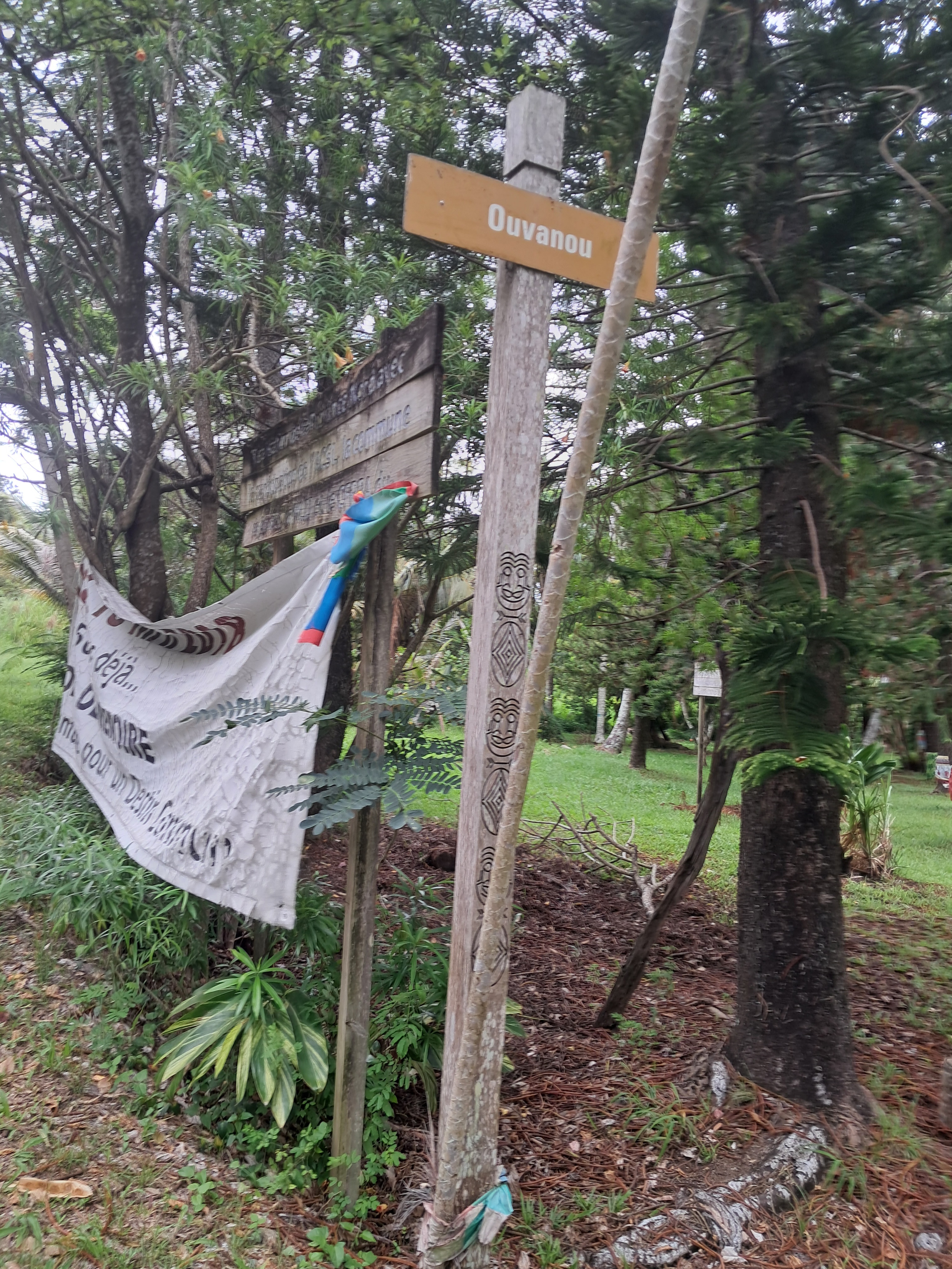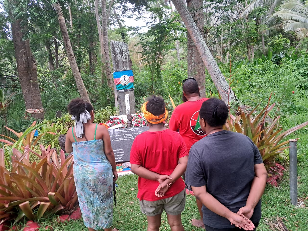 Le message gravé en tête de la stèle est clair : « Pour avoir défendu leur terre contre la spoliation coloniale du gouverneur Guillain, ici à Ouvanou, devant la chefferie Mwelebeng et sa population, le 18 mai 1868 à 15h00, 10 Kanaks ont été guillotinés ».