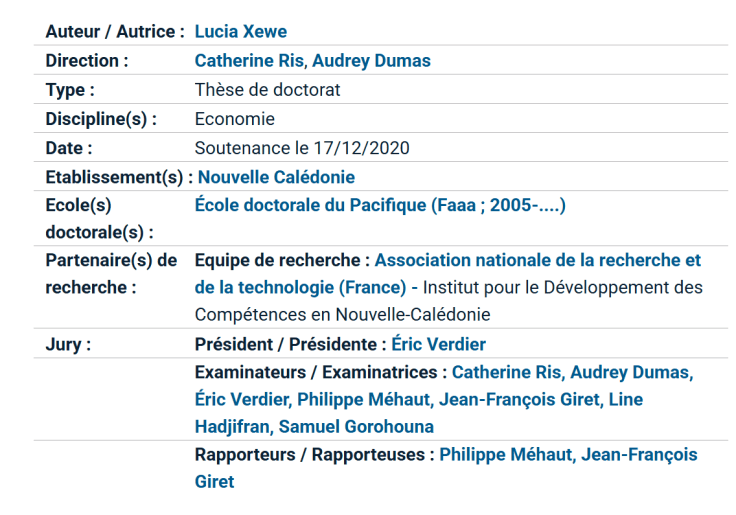 Pour répondre à l’objectif spécifique 1 de la SEIP-NC « Aider les populations les plus éloignées de l’emploi à intégrer le marché du travail », la Nouvelle-Calédonie a travaillé à la conception et mise en œuvre d’un nouveau système d’information regroupant les informations émanant des différents acteurs de la FPC : RELIEF. La première exploitation des données issues du système RELIEF réalisée dans ce travail de thèse a permis notamment d’analyser l’offre de FPC de la Nouvelle-Calédonie en lien avec les besoins exprimés par les employeurs et d’évaluer la performance des dispositifs de FPC. Les résultats de l’estimation des déterminants de l’insertion professionnelle des bénéficiaires des dispositifs de FPC ont permis d’identifier les facteurs qui influent plus ou moins sur les probabilités d’accès à l’emploi et à la qualité de l’insertion professionnelle et ceux de l’évaluation de l’efficacité des dispositifs de FPC ont permis de déterminer si ces probabilités sont attribuables à l’intervention de la politique de FPC du gouvernement de la Nouvelle-Calédonie.