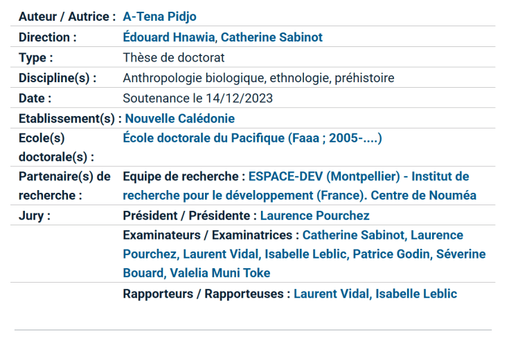A partir d’une étude ethnographique des parcours de soins des habitants de la chefferie Mwalebeng de Pouébo, ma recherche questionne en quoi ces itinéraires témoignent de l’évolution du lien à la santé en milieu kanak. Dans un premier chapitre, je relate les habitudes de vie des habitants de Pouébo rythmées par les activités sociales et vivrières puis j’aborde une période historique de l’implantation de l’église catholique à Pouébo pour permettre une meilleure compréhension des changements vécus dans les pratiques thérapeutiques et dans les mobilités que la recherche de soins implique actuellement. Les deux chapitres suivants traitent successivement des concepts mobilisés pour traduire et définir les problèmes de santé rencontrés ainsi que pour appréhender les thérapeutes kanak et leurs spécificités. Le chapitre quatre analyse les itinéraires empruntés par les malades. L’étude des parcours de soins met en évidence d’une part les difficultés que rencontrent les Kanak pour accéder aux soignants kanak et d’autre part l’attachement encore fort aux éléments structurants de la culture kanak, essentiels pour être en équilibre, être en santé. Enfin, mon ethnographie permet aussi de relever les dynamiques actuelles de réappropriation de certains savoirs, les difficultés de compréhension mutuelle entre soignants avec diverses approches ou entre médecins et soignés, tout comme les innovations variées qui ont cours aujourd’hui pour favoriser le dialogue entre les soignants kanak et les médecins occidentaux ou non kanak. Le dernier chapitre s’attache à partager le dynamisme présent autour des savoirs thérapeutiques et des enjeux sanitaires, politiques et sociaux autour de la mobilisation des savoirs. Il discute également de la reconnaissance des légitimités des guérisseurs kanak et des médecins.