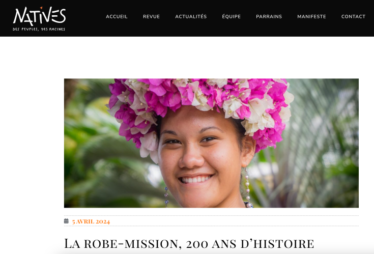 Un article de notre partenaire Revue Natives sur la journée internationale de la robe mission organisée en Kanaky-Nouvelle-Calédonie le 15 mars. Cliquer sur l’image pour accéder à l’article.