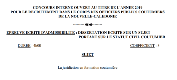 « L’accession au statut civil coutumier » sujet de dissertation pour le recrutement dans le corps des officiers publics coutumiers NC de 2019